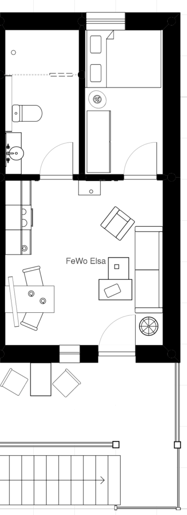 Die 29m² große Ferienwohnung ist ausgestattet mit einem separaten Schlafzimmer, einer voll ausgestatteten Küche mit einem Kühlschrank inkl. Nespresso Kaffeemaschine sowie einem Badezimmer mit Dusche. Mit der Schlafcouch im Wohnraum bieten sich, auch dank des separaten Schlafzimmers, Schlafgelegenheiten für bis zu 4 Personen. In dieser Ferienwohnung werden Handtücher und Bettwäsche zur Verfügung gestellt.